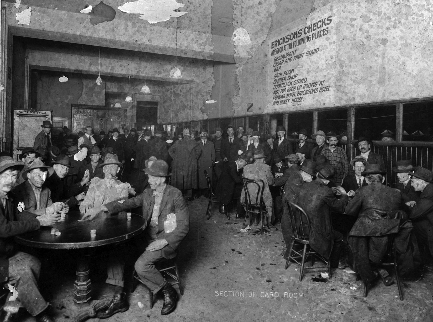 “Five minutes after the swift Telephone or the graceful Harvest Queen docked on the Willamette River, anywhere from 50 to 500 wage-slaves converged on Erickson’s like so many homing pigeons,” wrote Stewart Holbrook. “Seven minutes after arrival of a Northern Pacific or Southern Pacific train, in barged another crowd. It was said, and with some truth, that if you wanted to find a certain logger, you went to Erickson’s and waited; he would be there soon or late. It was common, too, to address letters to foot-loose friends in care of Erickson’s. The place often held hundreds of such missives waiting to be claimed.”