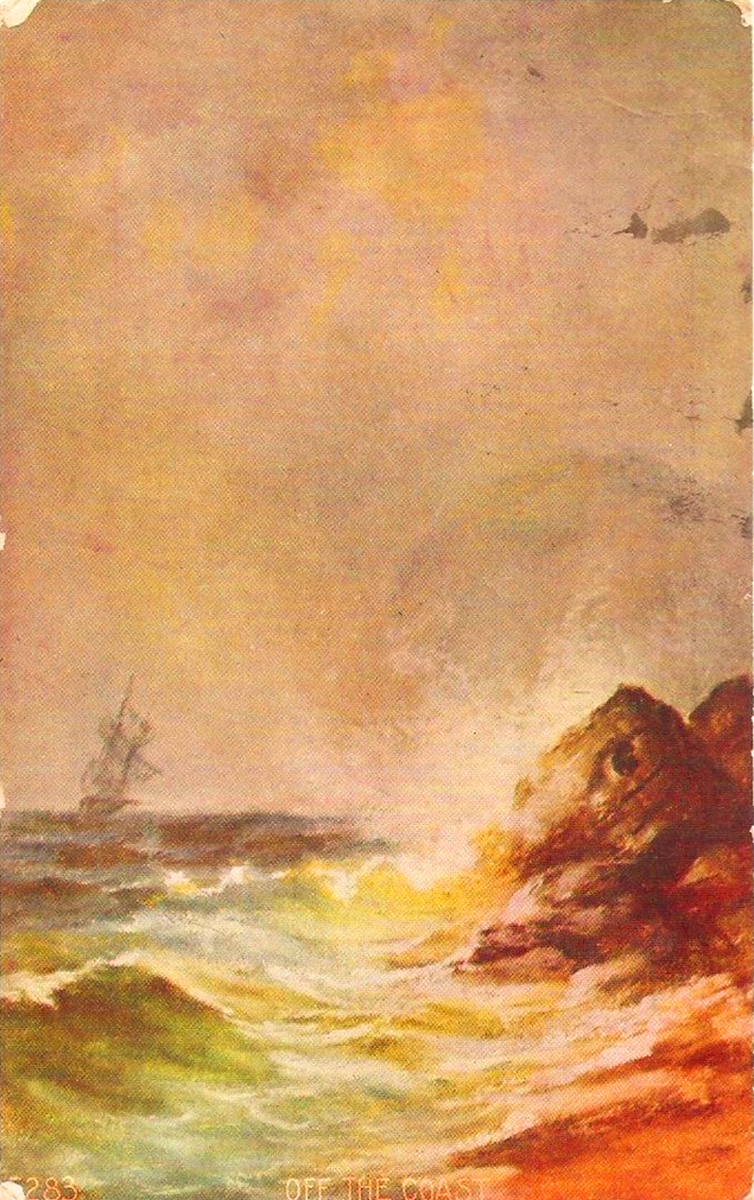 “A bank of fog lay close alongshore and hid the white surf line and the bar. not half a mile distant, whereat the men grumbled, for it was a rare sight to see a vessel sailing by, and they had looked forward for days to the mild excitement of watching the Mist cross the bar and fade away into the distance down the coast. They speculated variously about the absent boat and her unaccountable movements, commenting severely upon the captain in braving a practically unknown bar in the darkness of night and at a stage of tide considered unsafe even in broad day.