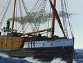 The steam schooner J. Marhoffer under way with a big deckload, shortly