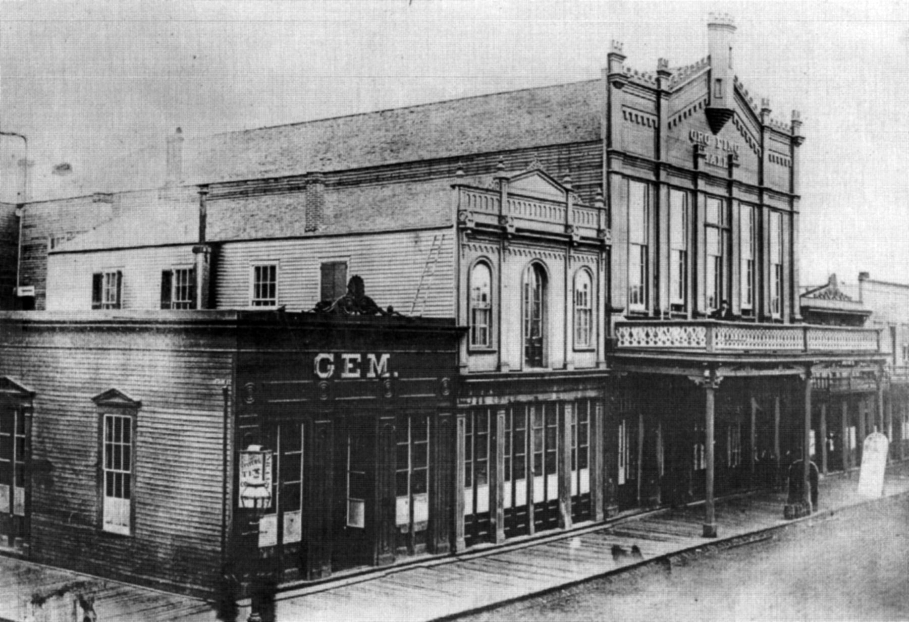 The Oro Fino Saloon and Theater as they appeared in 1876. The Gem