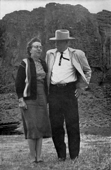 Reub and Eleanor Long stand in front of Fort Rock, the extinct