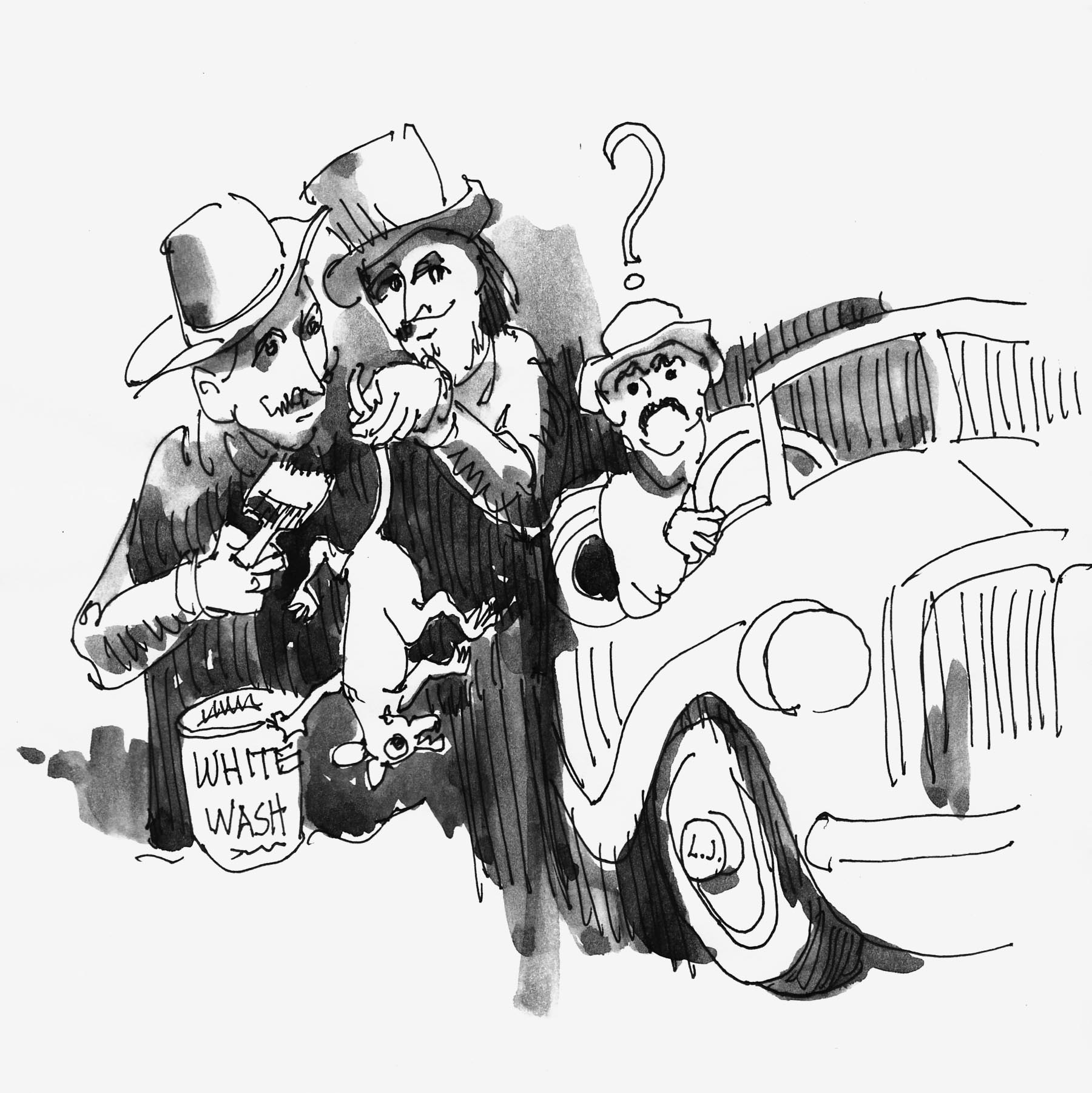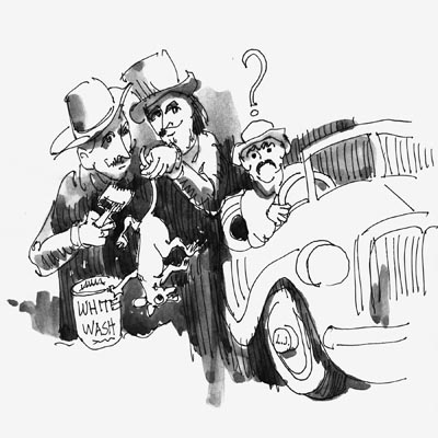 “At that point, several technical points arose,” Reub wrote. “Such questions came up as whether the whitewash should go on with the grain of the hair, thereby getting a smooth, slick job, or whether against the grain, thereby being more thorough, but leaving him rough and unattractive. Should we let the whitewash dry before turning him loose? Should we mix white of egg, flour paste, or anything in the whitewash to make it sticky?”