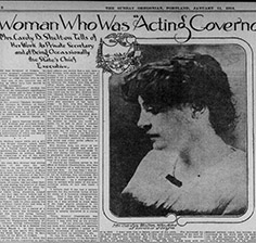 This feature story appeared telling the story of Caralyn B. Shelton’s short term as governor on Jan. 11, 1914, in the Portland Morning Oregonian. (Image: UO Libraries)