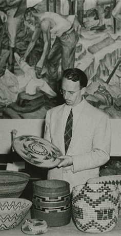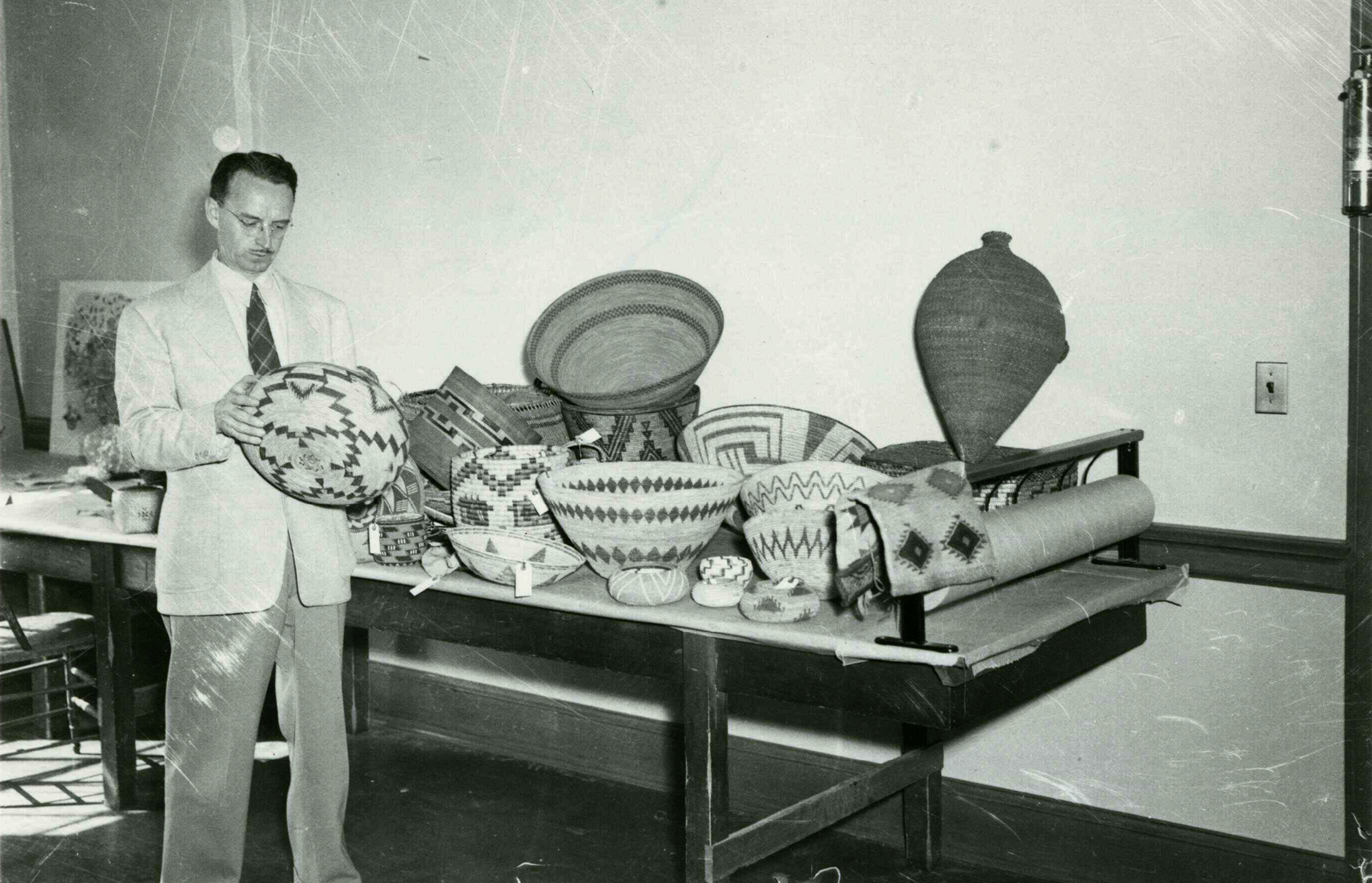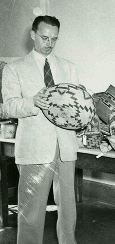 Luther Cressman inspects an Indian basket from a collection at the UO Museum of Natural History in 1937, when the museum was still located on the second floor of Condon Hall. The museum, which Cressman founded, has moved to its own building and has been renamed Museum of Natural and Cultural History. (Image: UO Libraries)In one of those caves, he made the first of several discoveries of the sagebrush sandals that would make his reputation. He found, in excavations, that he could roughly date his finds by recording whether they were buried above or below the layer of ash from the eruption of Mt. Mazama, the ancient supervolcano that exploded and created Crater Lake. At the time nobody knew exactly how old Crater Lake was; but, there would come a time when researchers would learn it was more than 7,500 years ago — proving Cressman had been right to be skeptical of the Clovis-first theory. Below that layer of ash, in an overhang known as Cow Cave — now called Fort Rock Cave — he found sandals as well as the butchered bones of Pleistocene animals that were known to have died out more than 10,000 years ago. Ever the conscienscious fieldworker, Cressman treated every square millimeter of the sandals he found with a preservative solution. A few years later, after the technology of radiocarbon dating was developed, he was doubtless vigorously kicking himself for doing this. None of the sandals he had pickled in preservative could be dated. Luckily, an amateur artifact collector had dug some sandals out while Cressman wasn’t looking. Cressman was able to get hold of them, and sent them to be radiocarbon dated. They proved him right. They dated back over 10,000 years. The scientific community did not give up its “Clovis first” theory easily, but over the years they have by and large been forced to concede that Cressman was right and they were wrong. That was especially true after the early 2000s, when UO researcher Dennis Jenkins recovered some coprolites — dried or fossilized human feces — that dated to 14,500 years ago. There were some voices in the scientific community that clung to the Clovis theory for a few years after that, claiming the results of Jenkins’ coprolites must have been an error introduced by careless researchers. But such protestations had the distinct whiff of desperation to them. After all, where were these allegedly careless researchers going to be able to find 14,500-year-old DNA samples to contaminate the dig with? The result is that a new scientific consensus has developed, and anyone who still thinks Cressman was wrong has been left behind, yelling at clouds. You can actually see some of the sandals on display at the Klamath County Museum in Klamath Falls, by the way. Most of them are on display at the Museum of Natural and Cultural History at the University of Oregon, though.