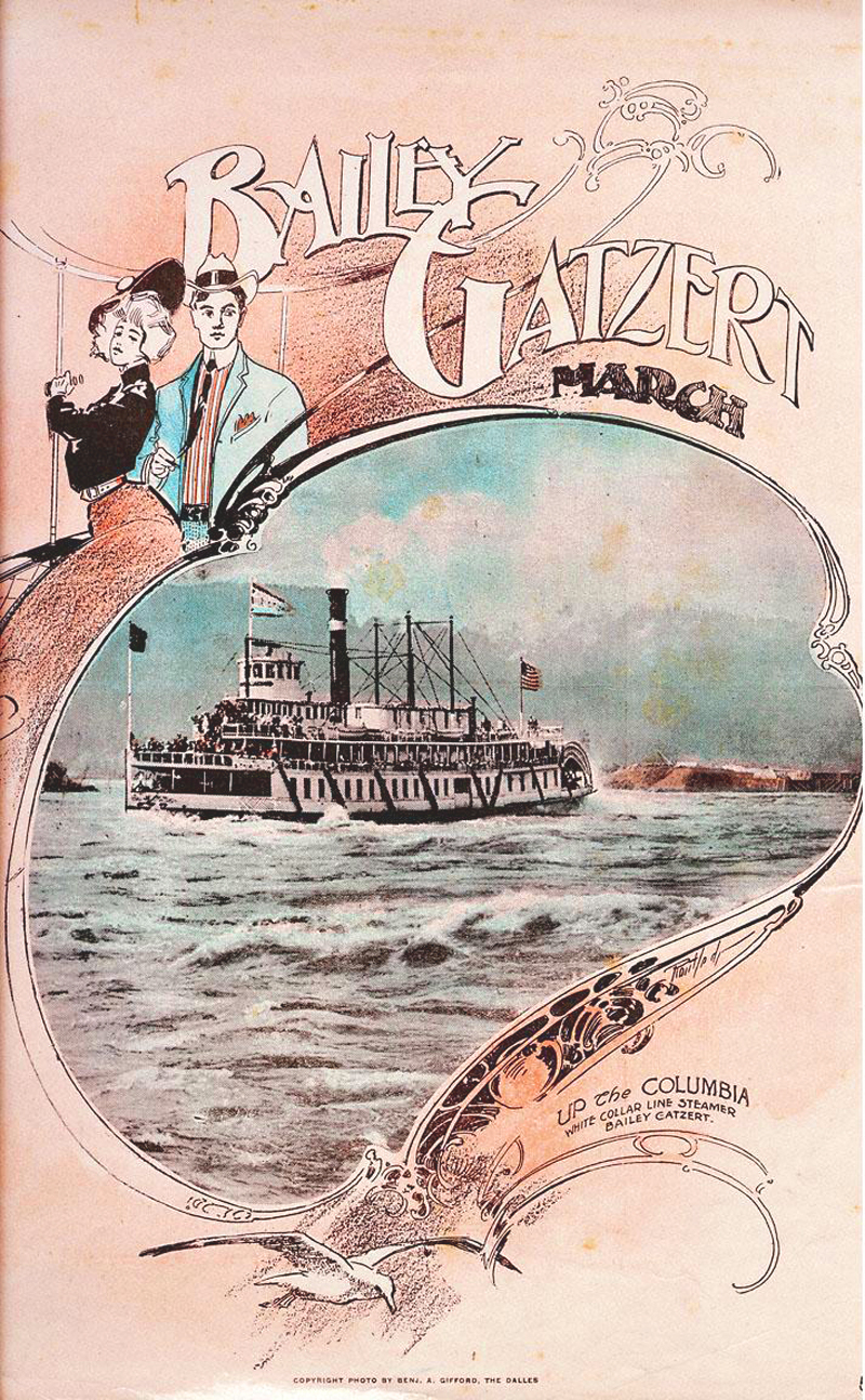 This is the front cover of the musical score to "The Bailey Gatzert March." The entire score can be found in the University of Oregon's special collections. (Image: UO Libraries)