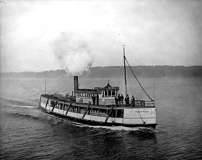Captain Uriah B. Scott’s prop-driven steamboat Fleetwood under way in Puget Sound in the 1890s. About ten years before this image was made, the Fleetwood was the fastest and most popular boat on the Portland-Astoria route. (Photo: University of Washington libraries)