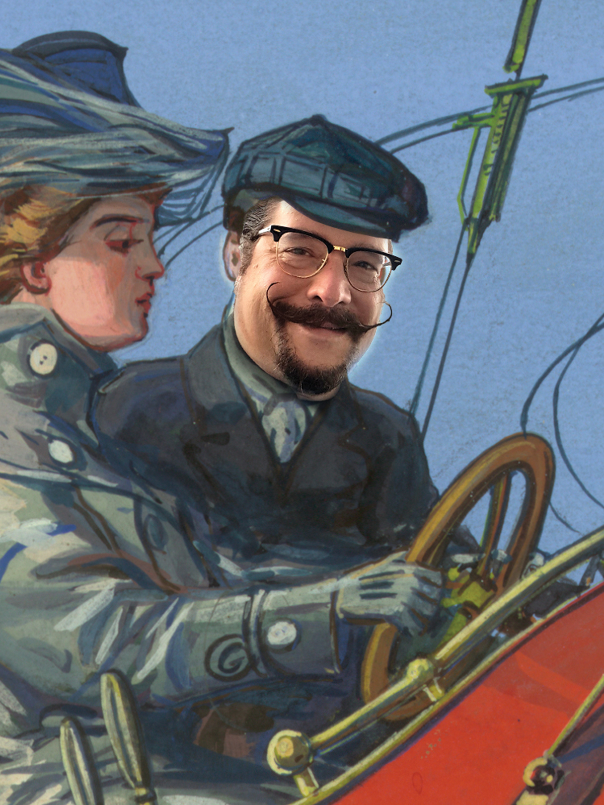 Your friendly neighborhood pop historian, Finn J.D. John, surveys his demesnes from the passenger seat of a friendly Edwardian lady's Zeppelin. (This is a painting titled "Future Air Travel" by Harry Dart, cover art for a 1908 issue of All Story Magazine, with my mug Photoshopped in of course!)